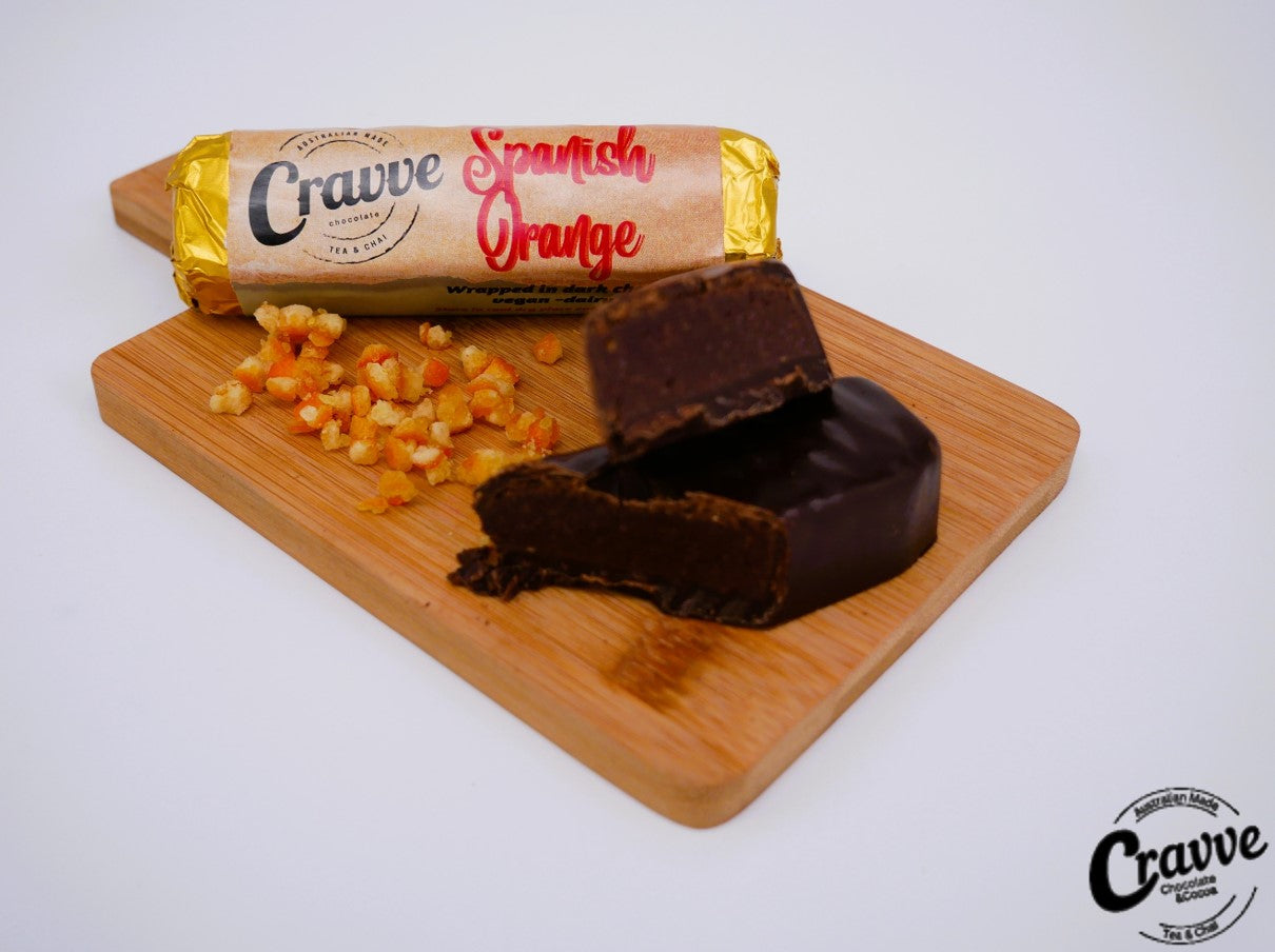 A rich and smooth ganache is prepared on site and infused with orange oil. It is then covered and set in a quality dark chocolate coating.