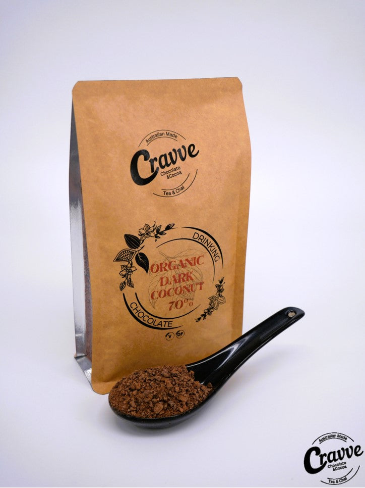 Delicious dark, rich coconut couverture made with organic coconut sugar - kibbled and ready for deliciously real chocolate beverages.
